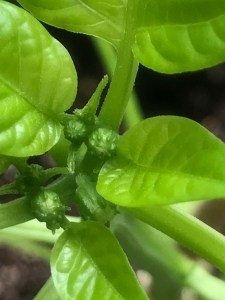 The pepper buds in the photo I snapped look so much larger than they are in reality. Since then, more have bloomed. Still no peppers.